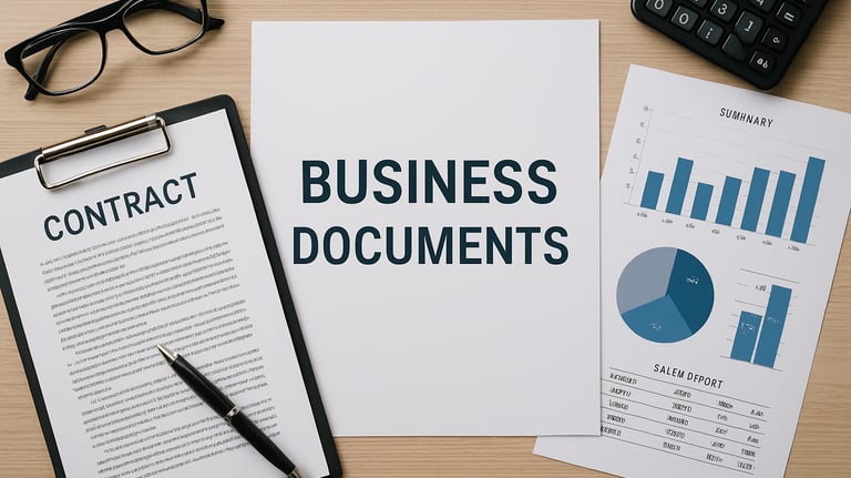 Sales and marketing documents - Legal documents - HR documents - Financial documents, accounting reports - Operational and technical documents - Internationalization documents
